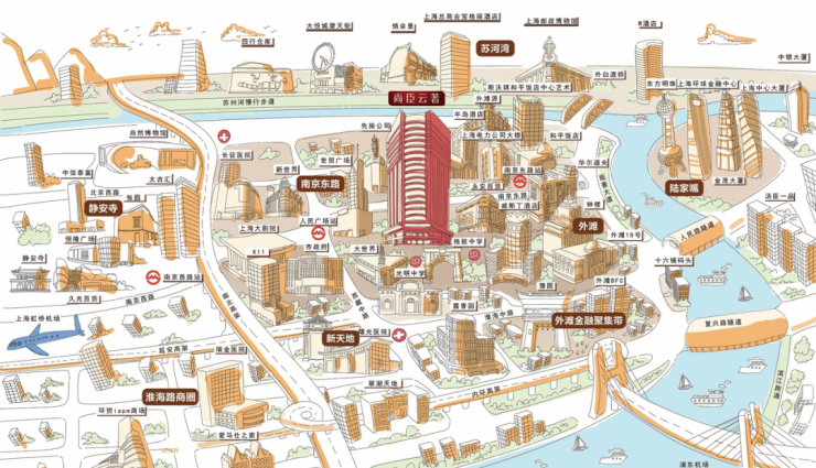 商业:来福士广场、世贸广场、兴业太古汇、永安百货、K11购物艺术中心、新天地广场、香港广场、外滩源、恒隆、久光、嘉里中心
