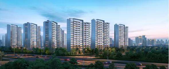 17栋双水岸高层,采用新时代现代主义风格,取意东方精粹,融入挑檐美学,秉持现代匠造理念,以高品质金属铝板、三玻两腔LOW-E宽幕玻璃营造现代简约外立面,运用极简灵动线条,打造腔调十足的潮流质感,筑造名门礼序。
