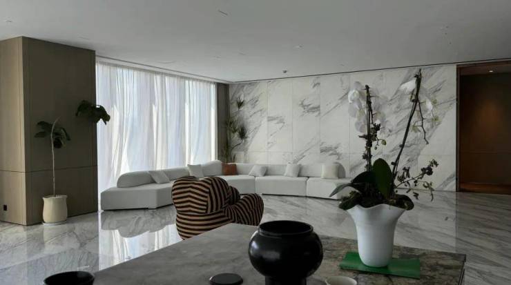 ②407⽅房源셈 全⽯材轻奢⻛셈 108⽅的客餐厅