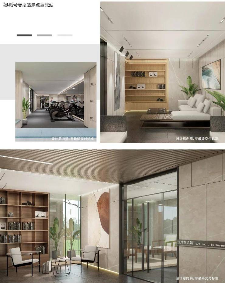 休闲会客厅空间、童趣梦想学堂空间、全龄运动健身空间、静享静谧书吧空间,涵盖不同年龄层的交互功能,满足业主精英日常社交与休闲,丰富社区生活肌理。