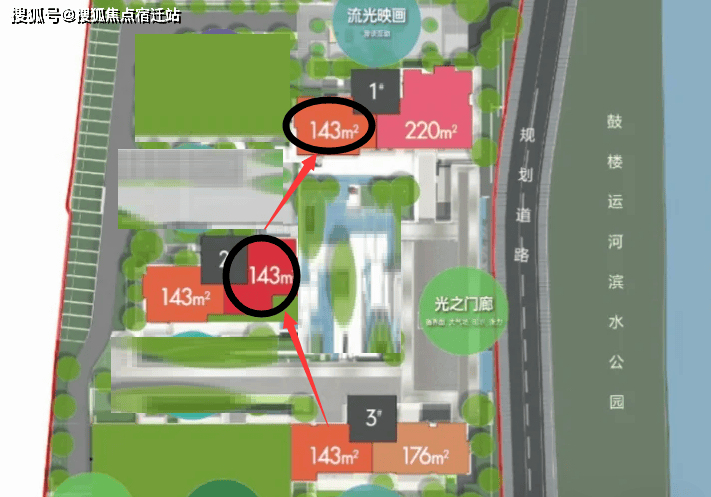 项目占地15亩,规划三栋32层的高层住宅,主打143、175、215,精装大平层,合计186套,主力户型是143平,占比67%。