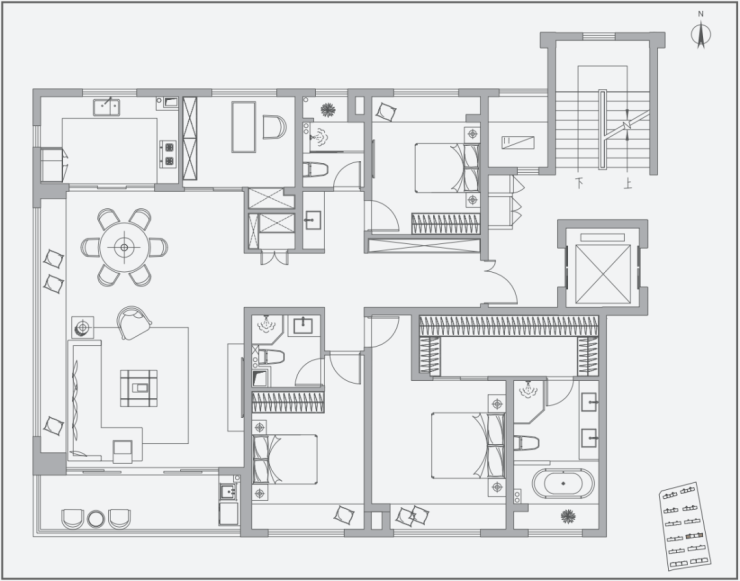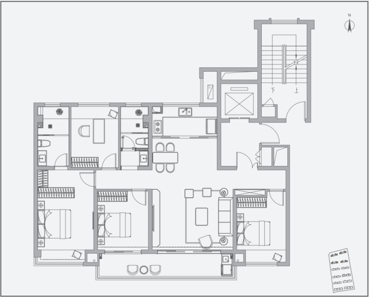 ▼洋房建面约169㎡(四室两厅三卫):独立入户玄关,双套间设计,独立餐厅,南北通透,宽厅设计,带有6个飘窗。