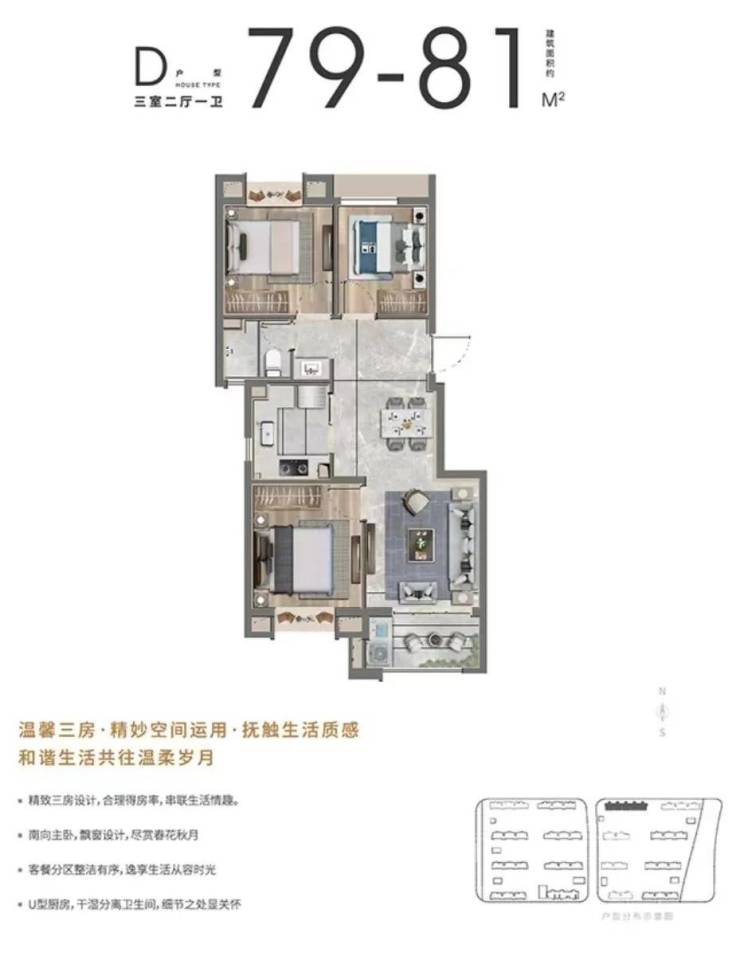 楼盘户型:D:79-81㎡三室两厅一卫(洋房)售罄B:96-98㎡三室两厅两卫(洋房)售罄B1:97-100㎡三室两厅两卫(高层)A:102㎡三室两厅两卫(洋房)售罄A1:104-105㎡三室两厅两卫(高层)售罄C:119㎡四室两厅两卫(洋房)C1:121-124㎡㎡四室两厅两卫(高层)