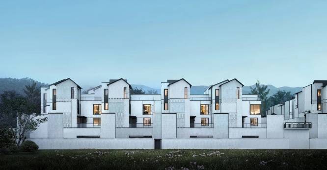 取古典山水意境,融合到设计的体块、比例、色调之间,通过现代工法将材质合自然院落意境融为一体。