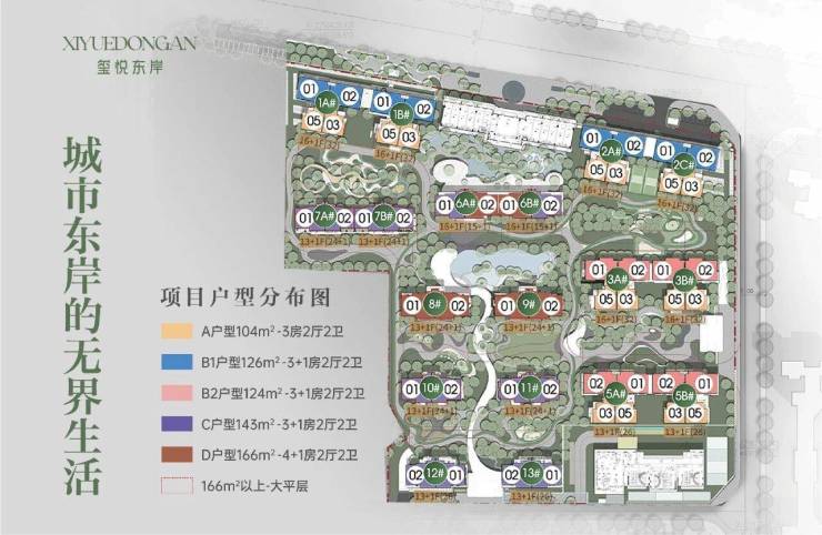 5. 在售面积:104-166 ㎡健康住区
