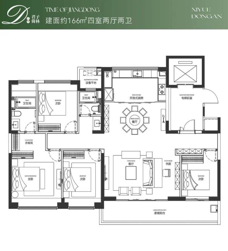 166㎡四房:270° 11 m观景阳台,顶配精装,一步到位。