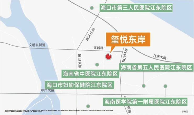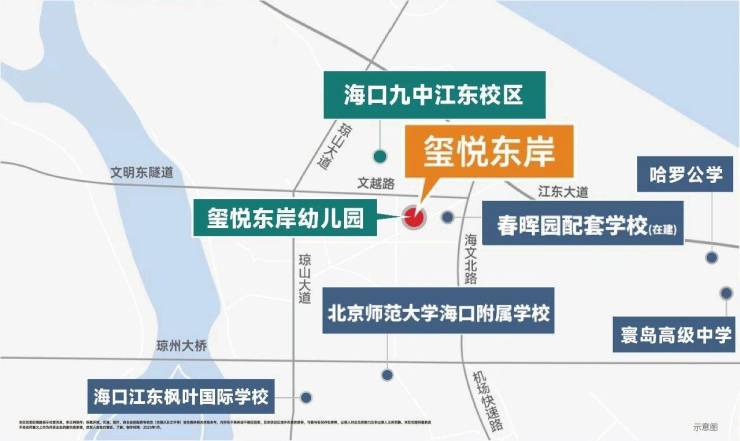 教育:自建 2500 ㎡公立玺悦东岸幼儿园;1.5 km 海口九中江东校区;周边寰岛高级中学、北师大附属学校。