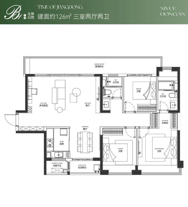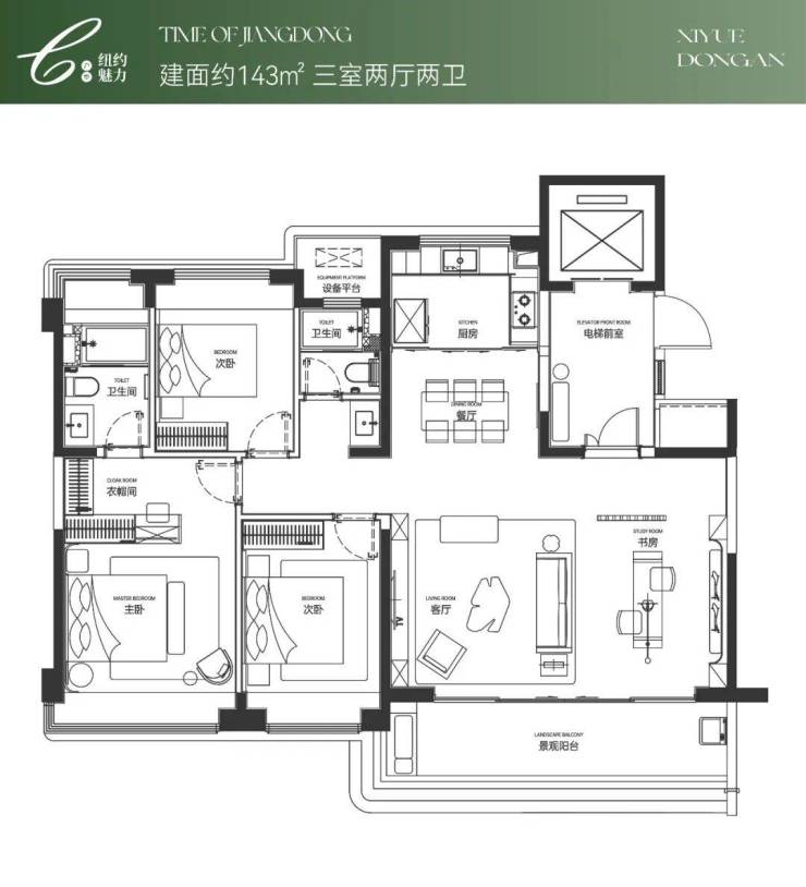 143㎡四房:改善标杆,8 m横厅+LDKB,主卧智能马桶。