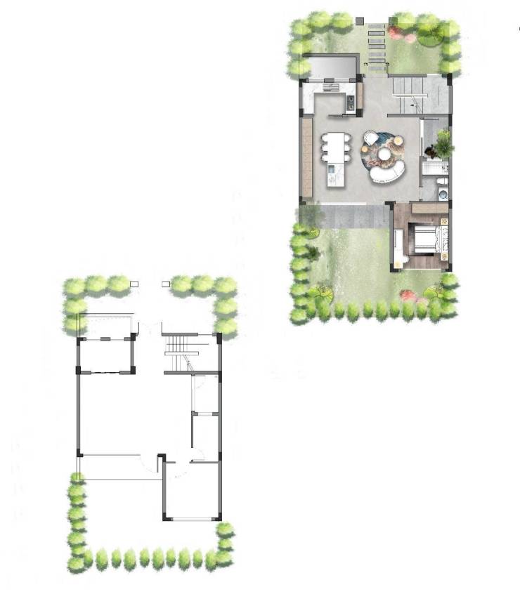 江南颂,地上两层纯联排,敬呈有庭有院有生活。南庭北院,满目花意正浓。负一层约4.95米高(不计容)自由空间,演绎志趣生活。