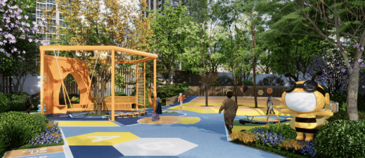 扬子秋涛,以精致剪裁的灌木象征起伏波浪,围合会客厅、阳光草坪,宁静私谧,最宜邻里闲坐洽谈;石湾春霁,献给孩子们的趣味乐园,秋千、摇摇椅、攀爬网等,把欢乐带给小业主们;澄光入境,全龄运动设施,休闲健身,趣味无穷;淮甸晴眺,一方林下安静天地,读书、闲聊,让邻里温情悠然而生……