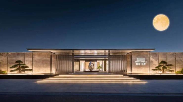 门庭,为归家第一道礼序。澄·云庐入园大门,以现代手法演绎中国风雅,打造尊崇宁谧的迎宾的空间。宽阔平檐,隐现华盖天下的气度。对称布局,古松迎宾;光阴格栅,二进庭院;不经意间透露的内容,让人忍不住想要迈步前进。