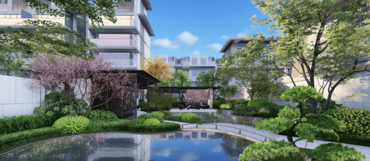 半亩方塘一鉴开,天光云影共徘徊。中国园林,水面不在大小,关键在布置得宜。澄·云庐东西两个地块的中心景观,围绕一池静水,打造诗意东方园。