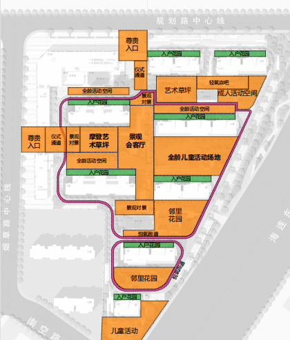 社区内配套中央景观会客厅、悦氧步道、超大摩登艺术阳光草坪、3大架空层、全龄活动空间,执掌繁华静界。