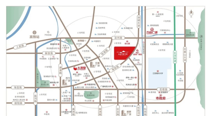 🧳商业:周边遍布万达、大润发、文峰、苏宁等大型商超及商场,万润街、东盐河美食街、巨龙路美食街、便民菜市场,打造“一站式便捷生活圈”