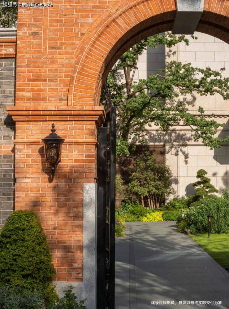 近人尺度的篱墙采铁艺栏杆,非近人尺度则用铸铁栏杆,体现斑驳感,景观节点使用元宝缝古法,凝固时间的心意。