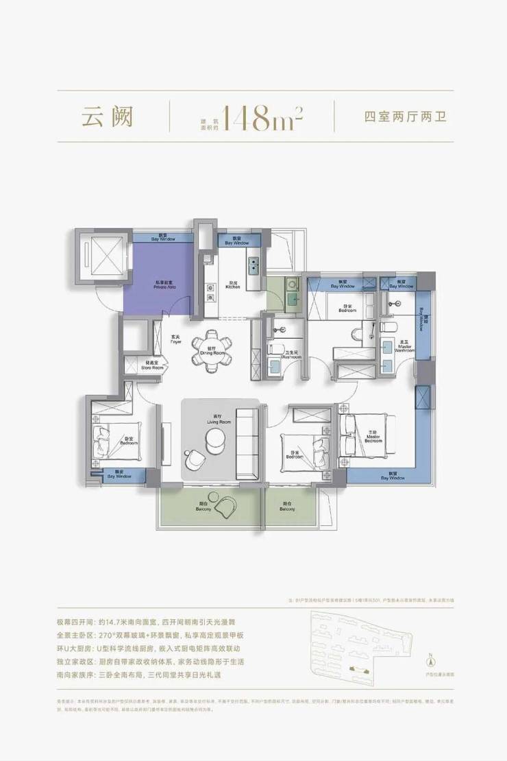 作为西派云间的改善标杆,建面约148㎡云阙以 “四大核心优势” 构建奢居标准。