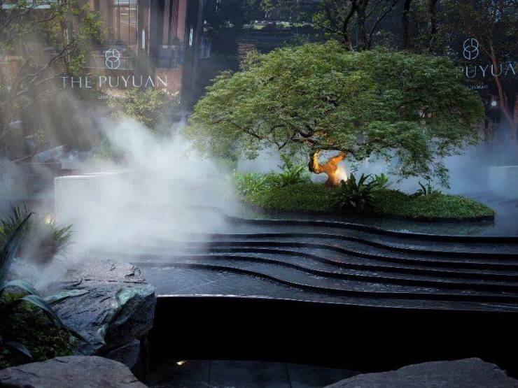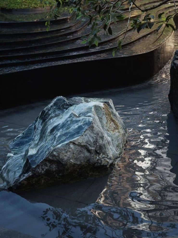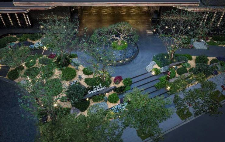 景观上入户门庭以百年冬青、参天香樟、六株乌桕、名贵朴树等百年名树群落,营造“先见林,再归园”的归家仪式感。庭院内浓缩了峡湾、密林、溪涧、山丘、叠瀑,打造上海首个“山川溪谷庭院”,实现内外景观的呼应,将“虽在都市,犹如山林”的隐奢理想具象化。