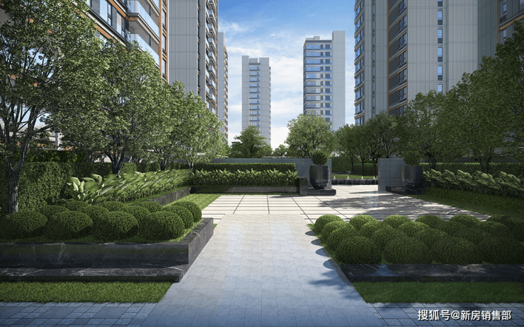景观上: 因为这得天独厚的天赋,在景观打造上,社区内的景观体系与家门口的水岸滨河景观轴能够相互融合,开发商将自然的水岸植入社区景观营造中,让业主在家门口就能拥有沉浸式的度假风景。