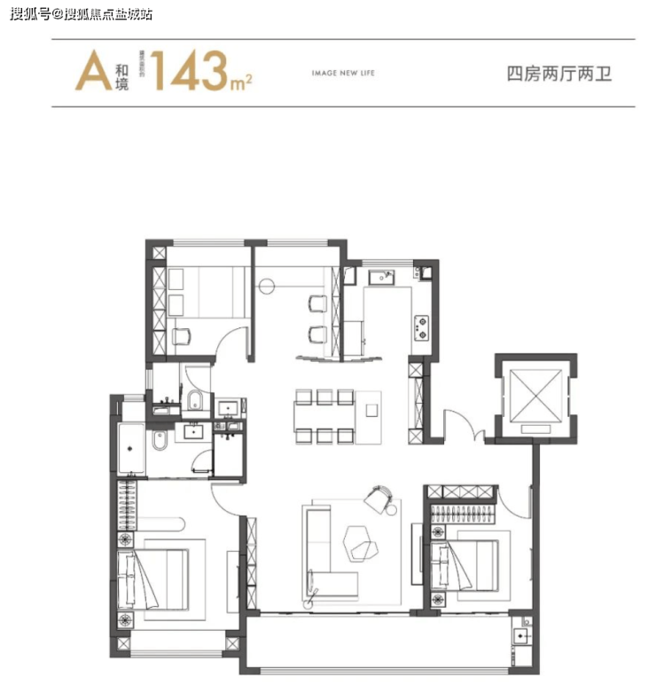 先看户型:一梯双开,让每户门前都拥有独立的入户空间四房两卫方正格局,主卧套房设计,主卫还带浴缸约5.4米客厅开间,奢阔方厅面积超40㎡南向约8.6米双联落地窗阳台将大面采光引入室内南向的两间卧室分别位于东西两侧,互不干扰,居住私密安静。