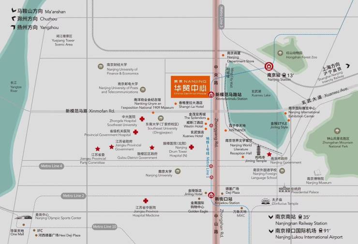 4.TOD城市地标综合体:项目负一层与地铁1号线新模范马路站直接连通,出地铁站1、2号口可直接抵达。项目一站即达南京站,约30分钟到达南京南站,约70分钟到达禄口机场,便捷高效出勤。
