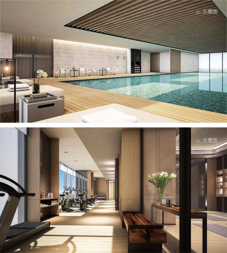 10.高端会所:精心配置国际风尚高配CLUB,规划配置有恒温泳池、健身房等供业主休闲的功能区。精研产品的艺术感、实用感和品质感,遵循塔尖人居标准,共鸣圈层人士对国际化都会生活的向往。