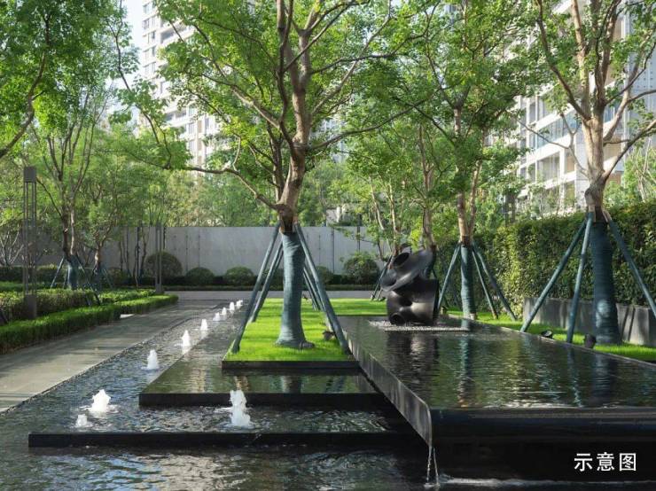 四大主题空间:隐奢社交领地在整个园区,经典的法式中轴对称的十字景观轴,串联四大主题空间。「寻溪如林、穿林听风、林野赏境、觅林童趣、沐林归境」的五重景观,穿插儿童游乐场、全龄运动场、轻氧休闲场、城市会客厅等活动空间,动静皆宜。