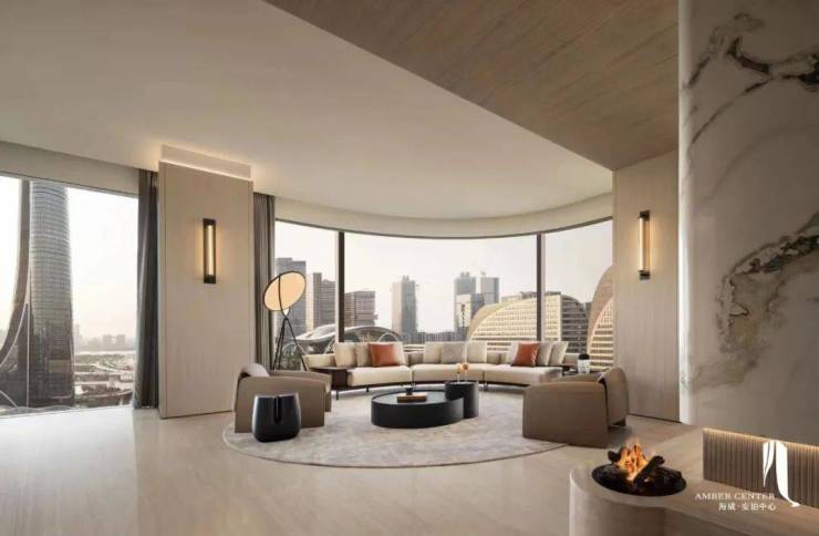 T1、T2為98套原生圍合商務大平層,命名為Amber 98,其公共區域和樣闆間,由室內設計事務所CCD主理完成。