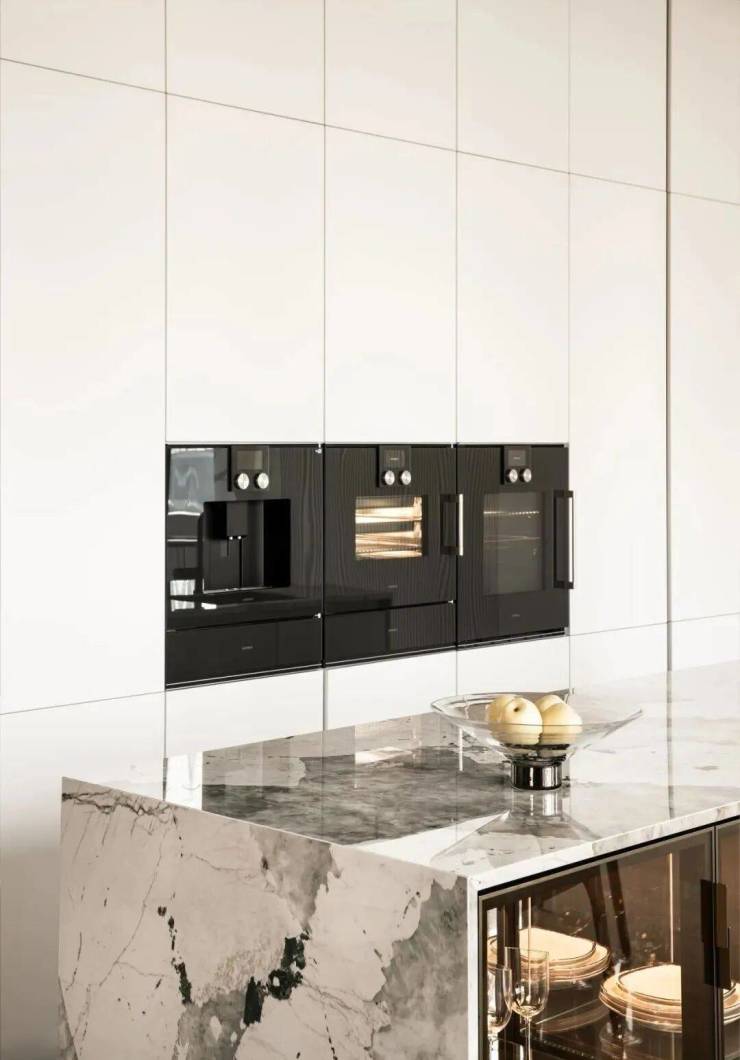 整體營造出現代輕奢度假氛圍,以FENDI CASA滲透於空間各個細節之中。88方的超大客餐廳,270度瞰景視野,19米的雙面採光,客廳都是L型採光的“無柱轉角落地玻璃廳”。每一場輕歌曼舞的派對,背景都帶著“H”標的奧體地標群。