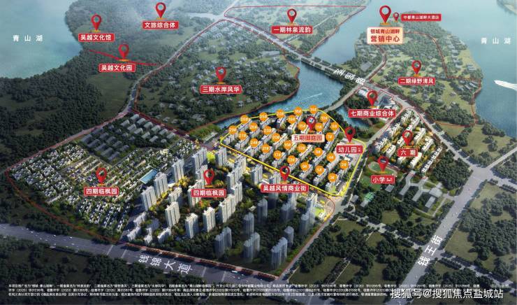 【商业配套】: 项目自身含3.3万方商业(包含吴越风情商业街)及1万方酒店,五星级中都青山湖畔大酒店,满足休闲、娱乐、餐饮、生活服务等需求。项目2km包含滨湖新天地商业综合体(在建),宝龙广场。