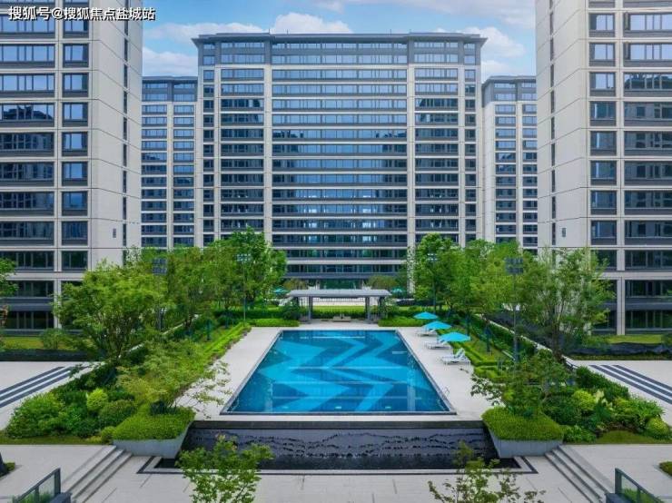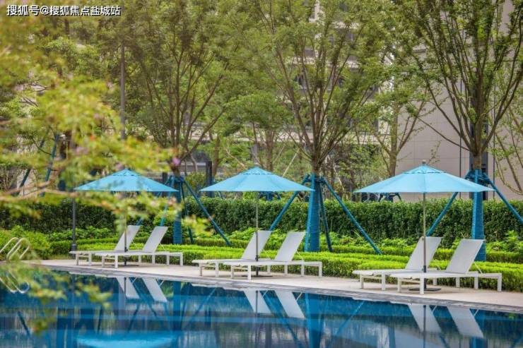 整条“水”轴,从南大门外象征日月联壁的水景开始,往里走是赏心悦目的镜面水系、下沉庭院,再往里,就是位于十字主轴之上的园区泳池。