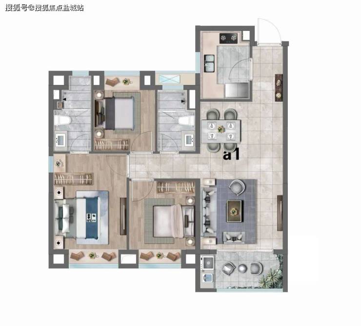 A1户型:建筑面积约98㎡3房2厅2卫