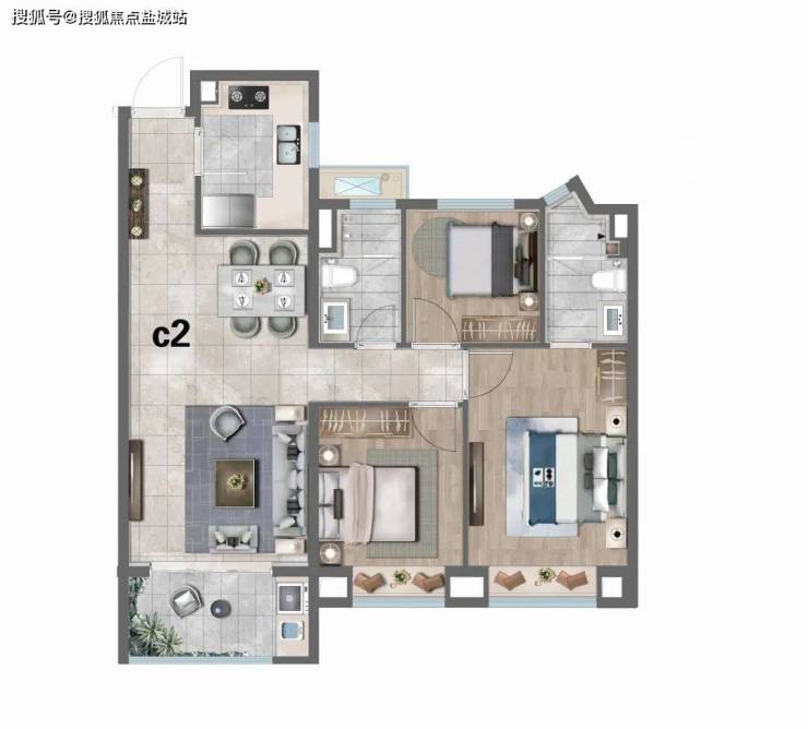 C2户型:建筑面积约98㎡3房2厅2卫