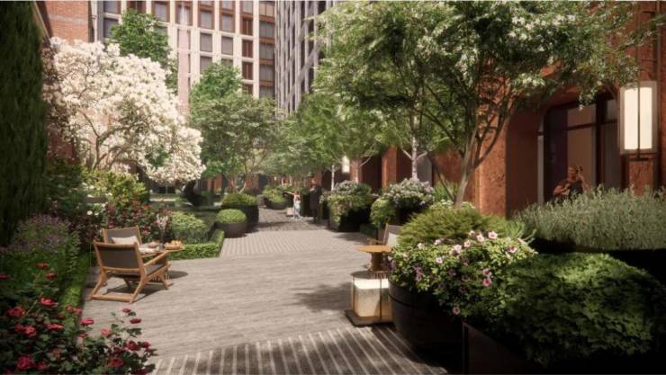 秩序与节奏是景观设计的基本表现形式,突显园林之美的同时也具备实用性。项目特别设计由宽入窄的线型园林,充分利用了每一寸空间,从开阔的弄堂巷道,到专属的私家庭院,也对应着从开放到私密的归家心理变化。