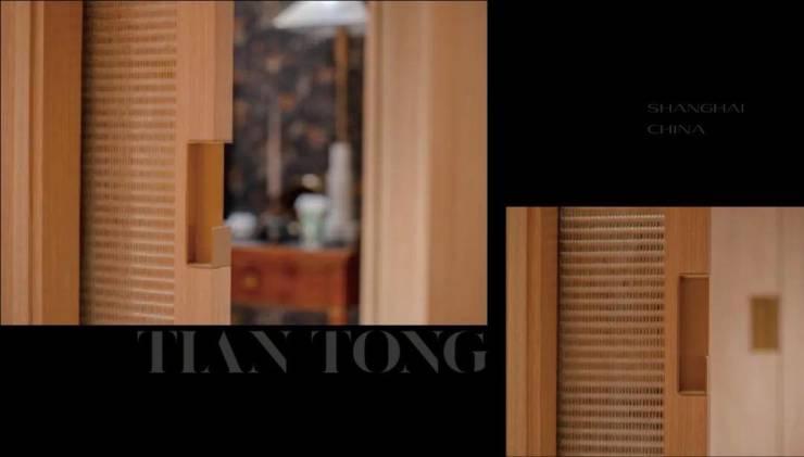 黄铜门锁系统,是门厅中无法掠过的视觉焦点,它极具质感,与空间的美学特征统一。Design333特别请了Von Morris创始人Eric Morris一同探讨样板间与整个项目所需要的门把手设计,经过了对饰面、手感、形制的多轮讨论与打样,研发出了一款天潼198项目限定的门把手。