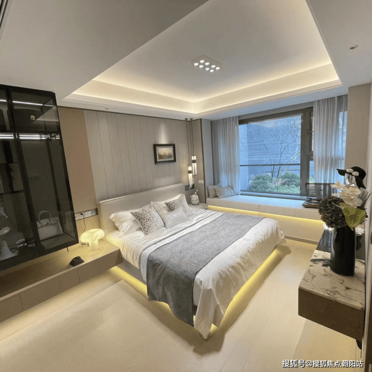 有别于传统住宅单元式立面风格,本案南立面大面积玻璃辅以流畅线条,加之考究配色,营造现代高级的精工建筑质感。