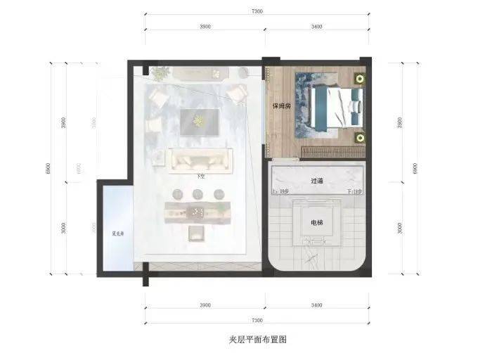 ● 约5.6米层高,可设夹层,布置静幽茶室、地下会客厅、保姆房