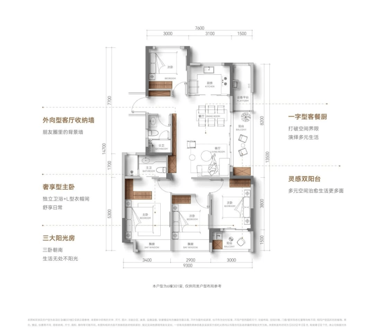 【光合面宽】约9.4米南向采光,阳光洒满角落