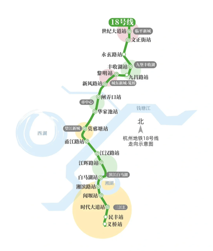 地铁四期18号线,堪称南北大动脉,横穿滨江核心区、南星桥、华家池、城东新城,再有4号线加持,快速通达全城。