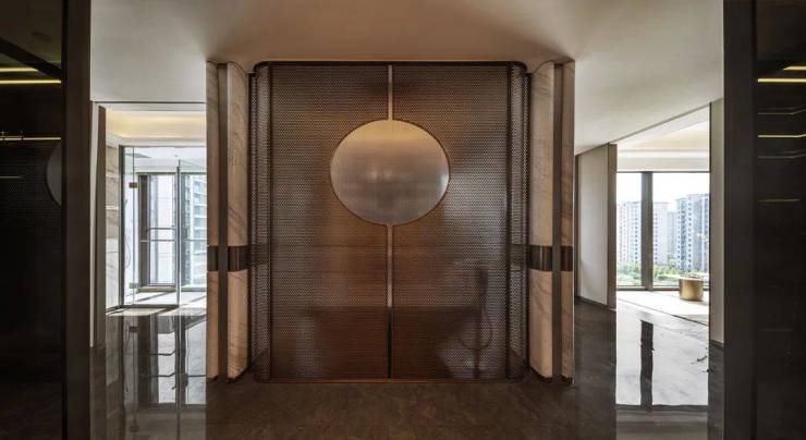 每一户都有专属电梯,更是身份的象征。璞云东方目前新开放的建筑面积约310㎡展示样板间,做到了类一梯一户,配合只到各自楼层的智慧梯控卡,每户拥有6㎡左右的私家电梯厅。