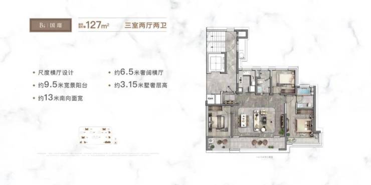 宽幕视野,最大约11.2m三联宽幕阳台