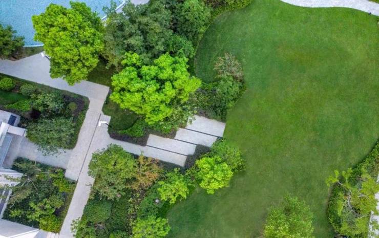 品质进阶增配举措4:数十年丛生名贵大乔木全冠移植,营造360°围合式林荫树木阵,每一天都漫步花园;