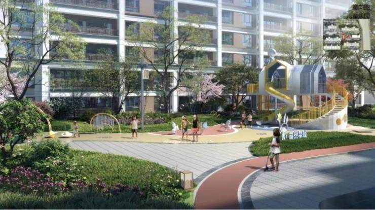 溪悦阁洞悉孩童不同阶段的心理及生理特征,以烂漫童趣为笔触,勾勒奇妙全龄游乐场,打造不同的场景分区。儿童游乐设施贯穿不同功能空间,在玩耍中成长,结识同龄玩伴,在嬉戏玩乐之间,肆意畅享童年光景。童梦乐园紧邻有氧环跑道,自由奔跑时,犹如一场在穿越花园的旅程。