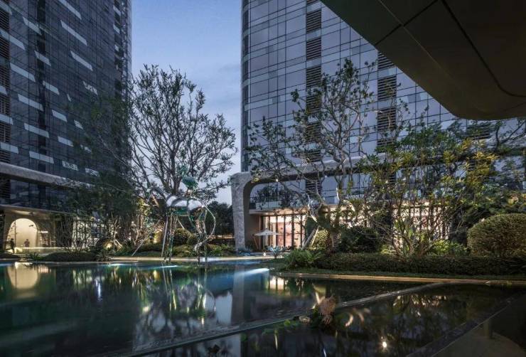 成都唯一和独具创新的存在,将艺术的植物画境融入花园,结合四幅莫奈和卢梭的世界画作,定制私享的谧境花园,敬呈一幅城市核心美景和艺术画境;亚运会灯光设计大师——蔡放放,打造入夜灯光艺术耗资百万打造国内最大的水下森林系统——天野尚大师同款“天才”艺术家向京雕塑,于小区放置了两座雕塑作品,【寂静成型】+【异境—白银时代】。成都唯一一个,也是最先使用艺术大家向京真迹雕塑作品作为景观小品的奢宅