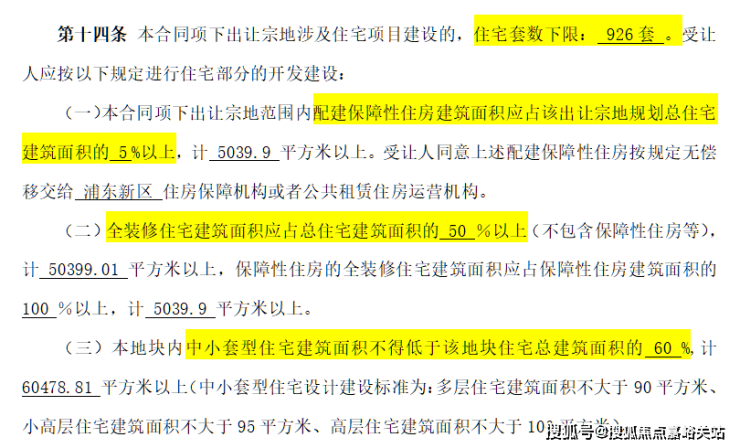 根据出让合同显示,项目占地面积约55988.9m²,容积率为1.8,限高50米,住宅套数下限926套,需配建5%以上的保障性住房,全装修比例50%。