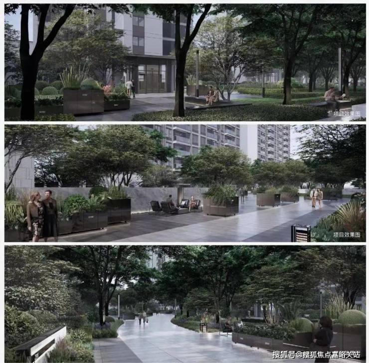 项目精心规划“一环一轴三园”,于建筑中另辟一方天地,以绿意包裹整个小区,打造绿氧环绕的公园住区。