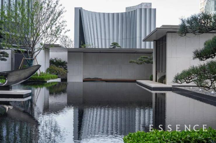 由 Aedas主笔设计,其灵感取自“高山流水”的山水意境,筑就一座展现杭州山水城市特色的地标作品。建筑挺拔洗练,以极简的线条、扁平化的立面表情与城市肌理相呼应,勾勒地标建筑当代语境。和城市界面之间,兆丰ESSENCE通过层层叠叠的自然景墙,形成天然的绿意屏障,回廊、水院与婆娑的罗汉松,以及近200㎡的河岸观景台,共同围合出一片静藏于心的都市谧境。