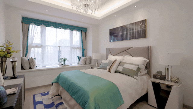 1.8米宽、0.8米深的飘窗设计,早上起床拉开飘窗,让夏日的味道立马能洒满整个房间,创造独属于自我的内心场域,一天的好心情从俯瞰园林风景开启。