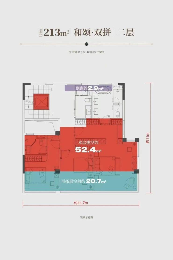 中海九樾・和园建面约213㎡双拼,直接将面宽锁定约11.7米,以IMAX巨幕采光面,打造类大平层的单层采光尺度,让别墅真正进入宽境时代!