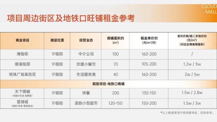 『周边租金与地铁口商铺价格』参考