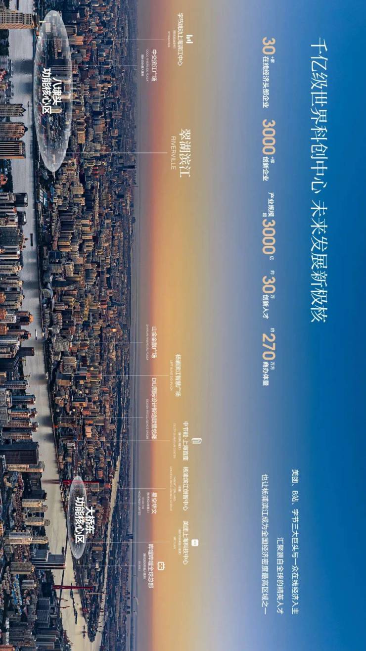 滨江创智中心等将在2026年前基本竣工并投入使用。预计到2025年,将有30家以上在线新经济头部企业、3000家以上创新型企业聚集在这里,产业规模超过3000亿元。